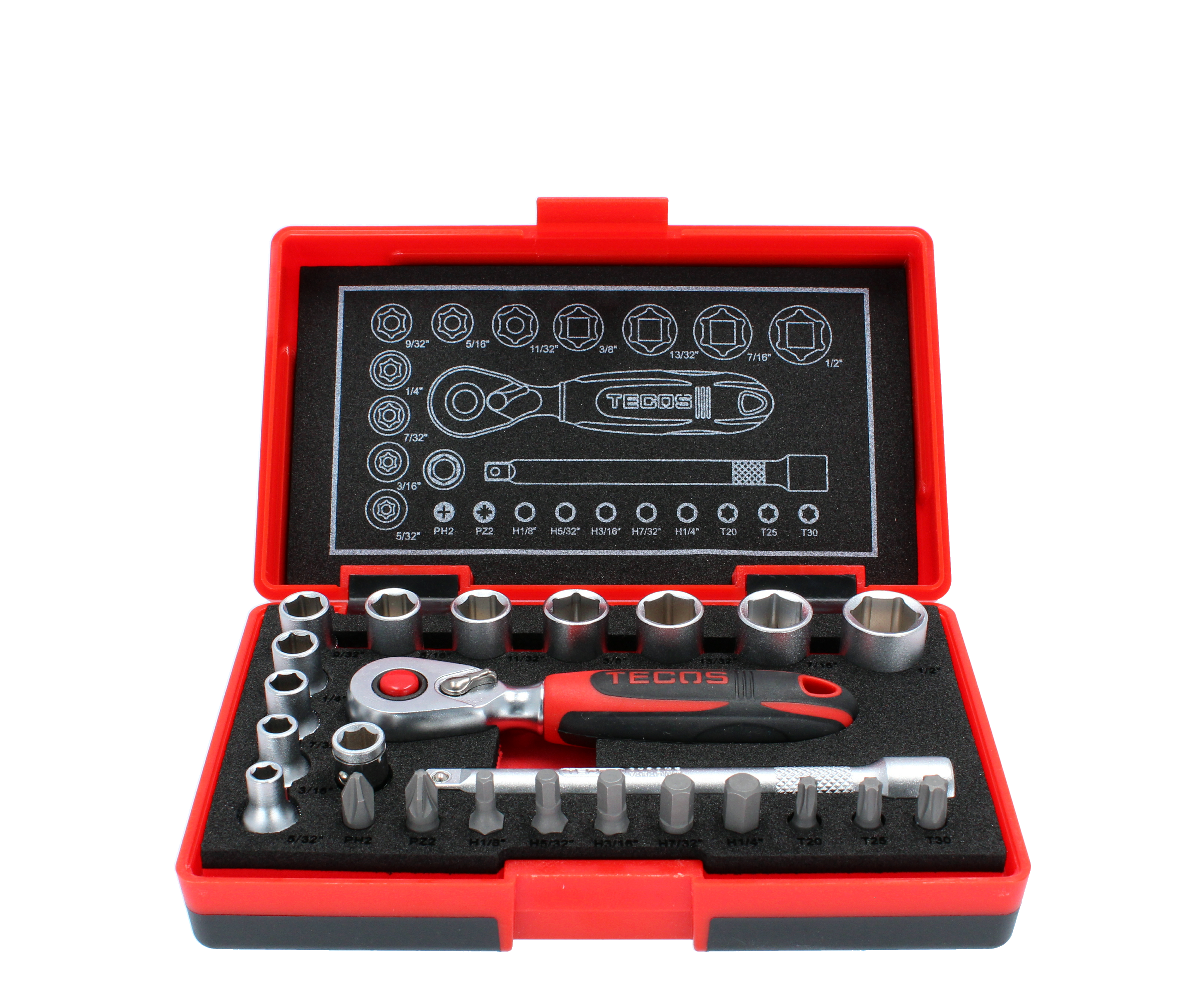 Kompakti hylsy ja kärkisarja räikällä. Tuuma mitat.