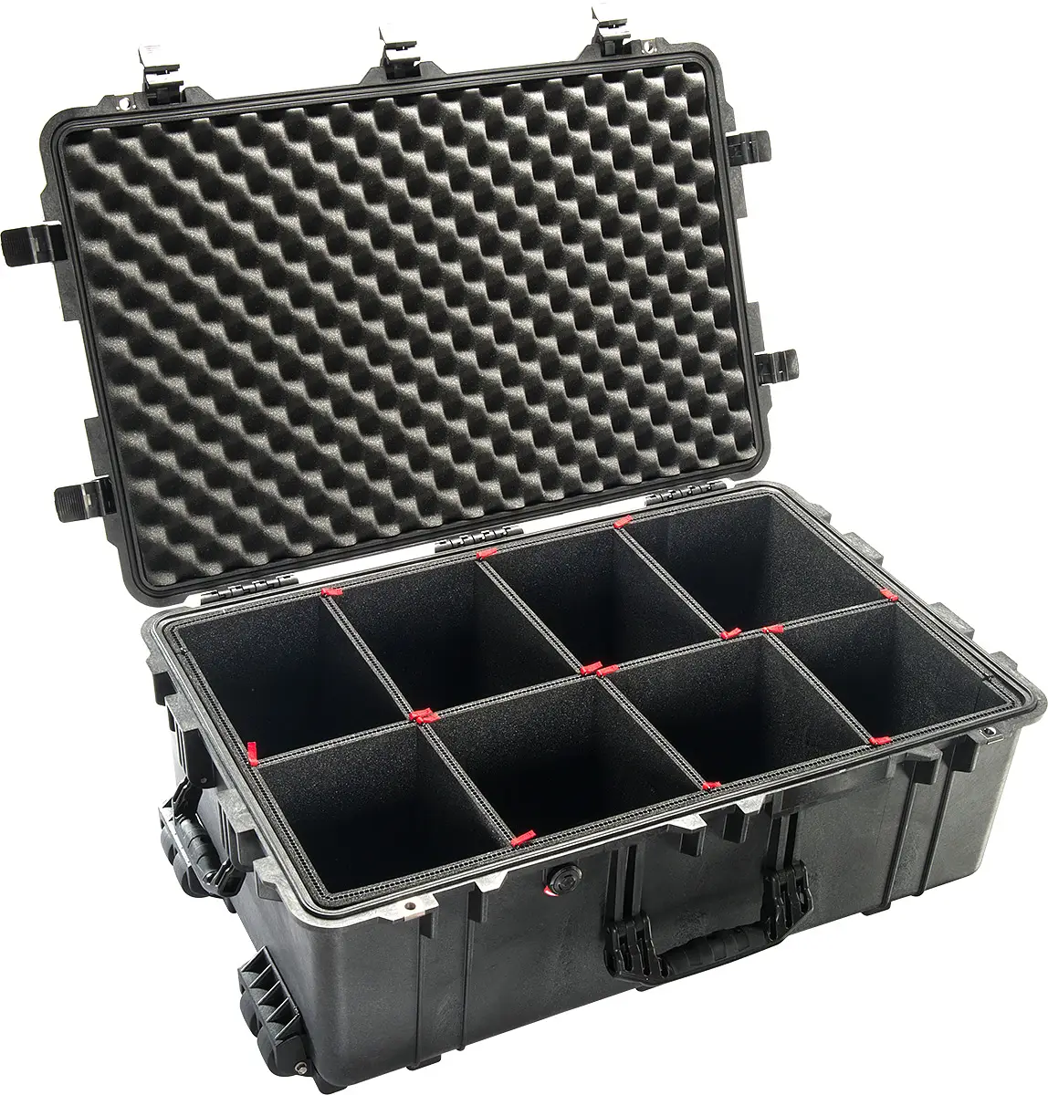 Peli™ CASE 1650 – 4 pyörää ja teleskooppikahva helppoon kuljetukseen. Valmistettu kestämään kovimmat haasteet vaativimmissa olosuhteissa. Homo- ja kopolymeerimuovin yhdistelmä tekee kotelosta joustavan ja suojaa arvokkaita laitteitasi tehokkaasti. Voit siirtyä pisteestä A pisteeseen Z ilman huolta varusteidesi turvallisuudesta.