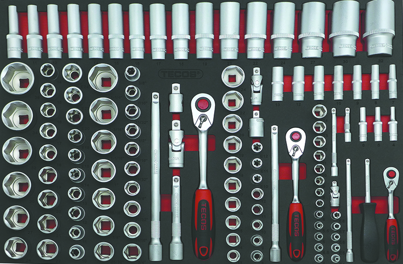 Tecos Hylsyavainsarja Flankdrive hylsyillä ja ergonomisilla räikkävääntimillä EVA alustalla